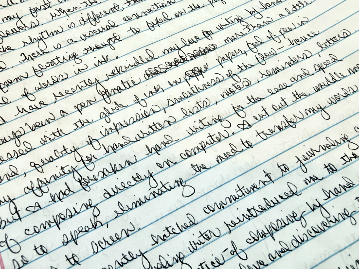 I have recently rekindled my love for writing by hand. I’ve always been a pen fanatic, more than a little obsessed with the glide of ink on paper, feel of pen in hand, quality of impression, smoothness of the flow—hence my affinity for handwritten notes, lists, reminders, letters. But I had forsaken hand writing for the ease and speed of composing directly on computer. I cut out the middle man, so to speak, eliminating the need to transfer my words from paper to screen.